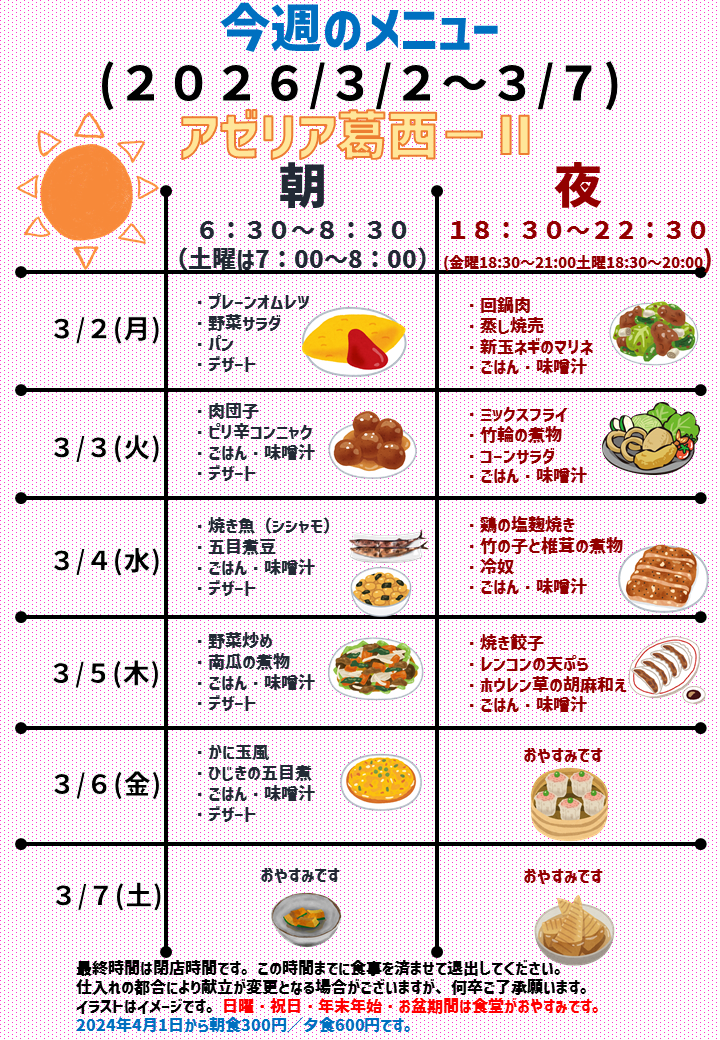 2026年3月2日~2026年3月7日のメニュー